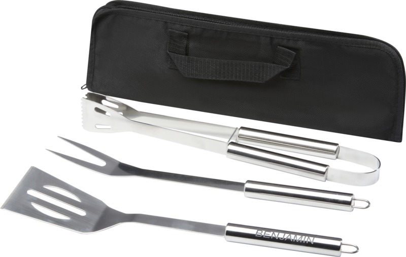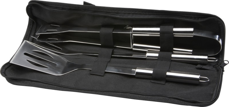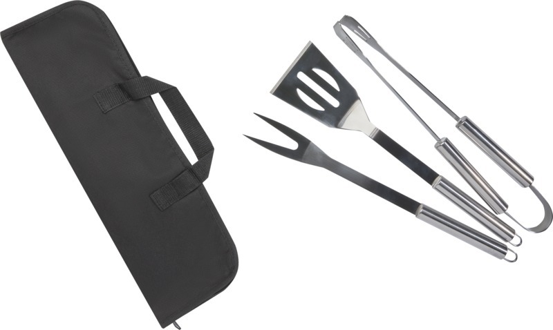 Набор для барбекю из 3 предметов: лопатка (34,8 x 7,5 см), вилка (35,4 x 3,35 см) и щипцы (35 x 6,8 x 4 см). Все аксессуары поставляются в легком футляре для удобства переноски и хранения. Идеальный аксессуар для барбекю в саду или для того, чтобы взять с собой для приготовления еды на гриле на открытом воздухе с друзьями и семьей. Нейлон, нержавеющая сталь.