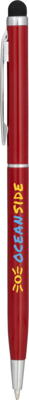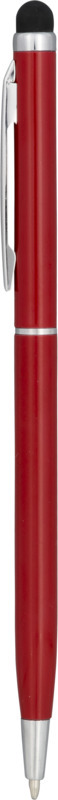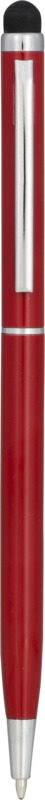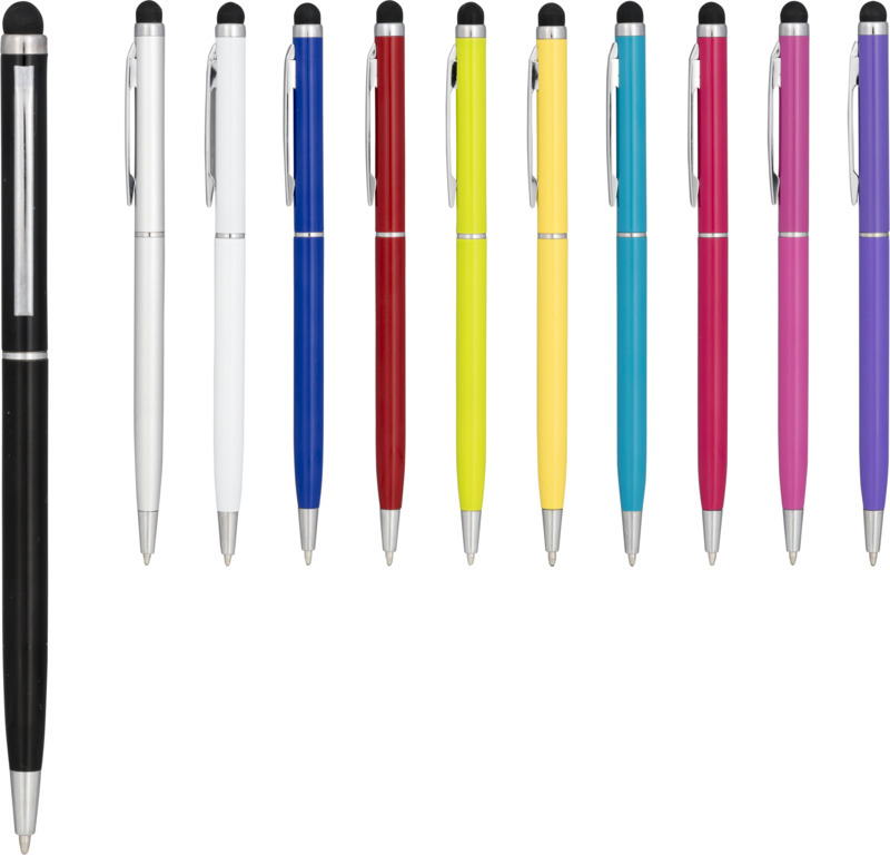 Тонкая алюминиевая шариковая ручка с поворотным механизмом и стилусом. Алюминий, Пластик.