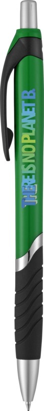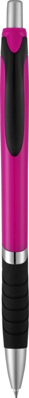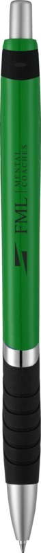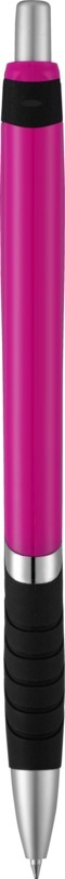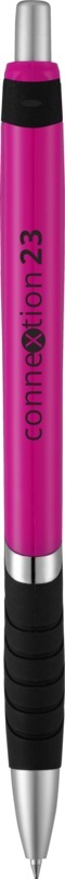 Популярная, стильная кнопочная шариковая ручка в однотонном корпусе с резиновой накладкой черного цвета и дополнительной серебристой отделкой. В наличии широкий выбор привлекательных цветов. Пластик ABS.