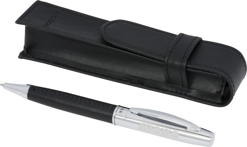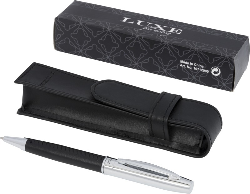 Эксклюзивная шариковая ручка с обтянутым кожаным материалом корпусом и чехлом из искусственной кожи, упакованная в подарочную коробку «LUXE». Металл, Имитация кожи.