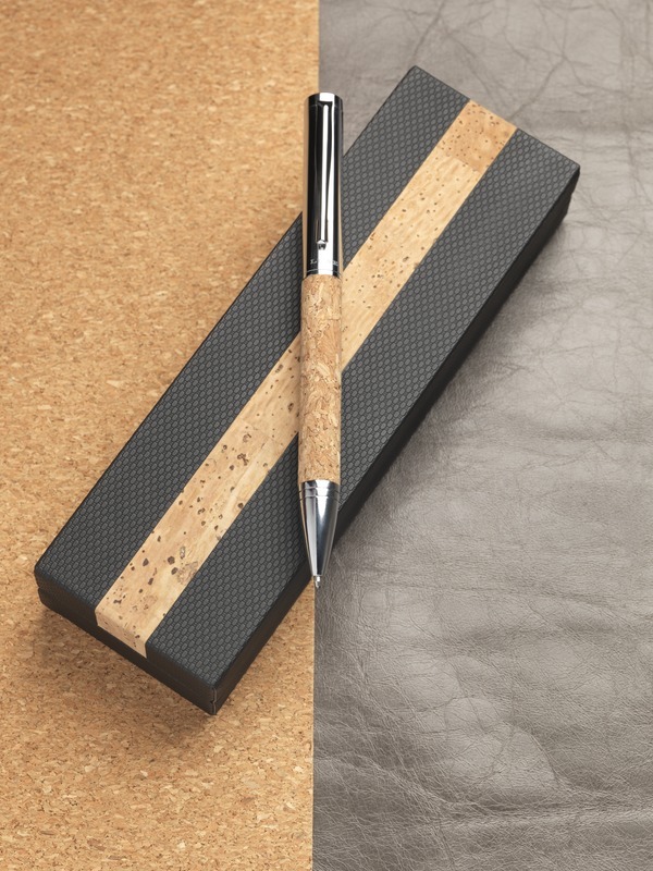 Шариковая ручка с поворотным механизмом и пробковыми элементами. Предлагается в подарочной коробке Luxe. Cork.