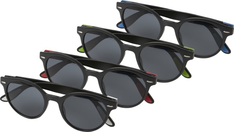 Эти солнцезащитные очки, разработанные с учетом модных тенденций, являются идеальным сувениром, который можно подарить во время промо-акций на летних фестивалях, мероприятиях и во время других событий на свежем воздухе в солнечную погоду. Они изготовлены из чрезвычайно легких материалов и удобны в носке. Эти очки соответствуют стандарту EN ISO 12312-1, имеют линзы со степенью защиты UV400, которые относятся к категории 3, что делает их идеальным выбором для защиты от яркого солнечного света. Пластик PP.