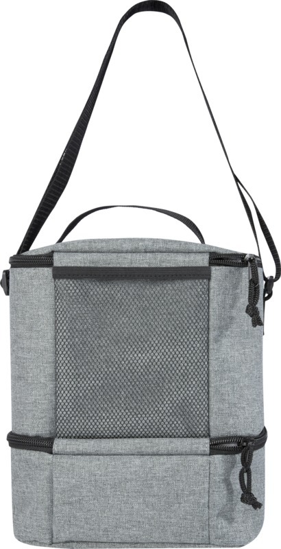 Сумка-холодильник Tundra выполнена из переработанного материала, в ней достаточно места для всех ваших продуктов, которые вы берете на обед. Имеет одно верхнее изолированное отделение на молнии и одно нижнее изолированное отделение на молнии. Нижнее отделение идеально подходит для бенто-бокса, а в переднем прорезном кармане удобно носить защитную маску и другие небольшие предметы. Подкладка и внешний слой сумки-холодильника PEVA изготовлены из переработанного РЕТ-пластика. 600DПереработанный Полиэстер.