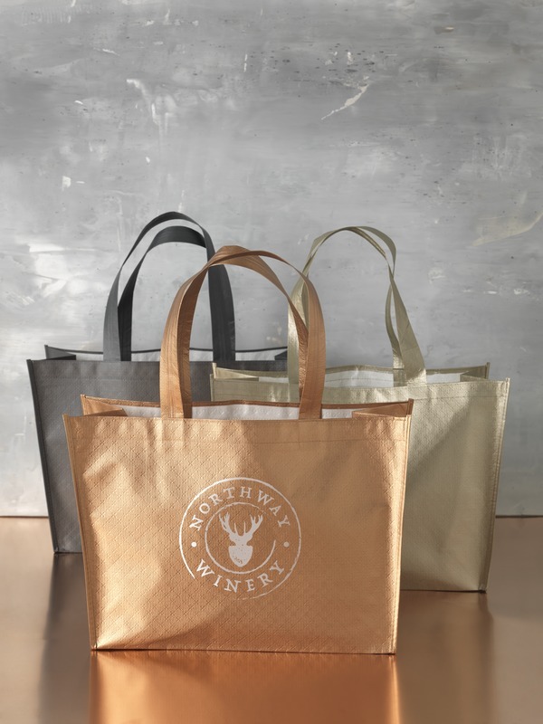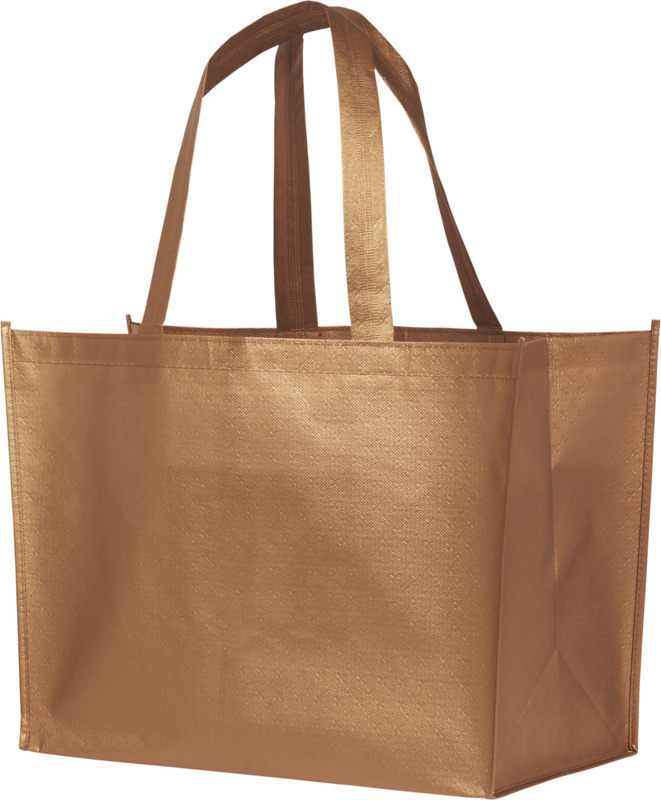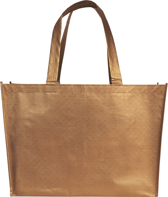 Легкая, гибкая ламинированная, блестящая сумка-шоппер. Сделана из ламинированного нетканого полипропилена (80 г). Laminated non-woven polypropylene, 70 g/m2.