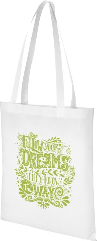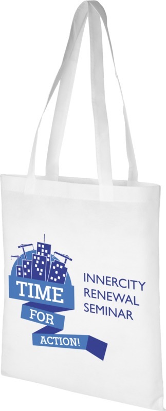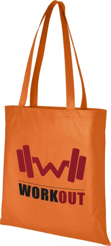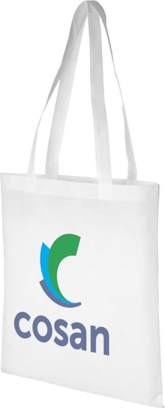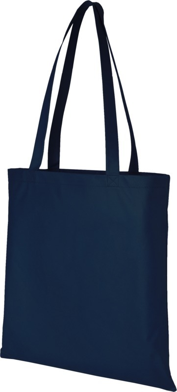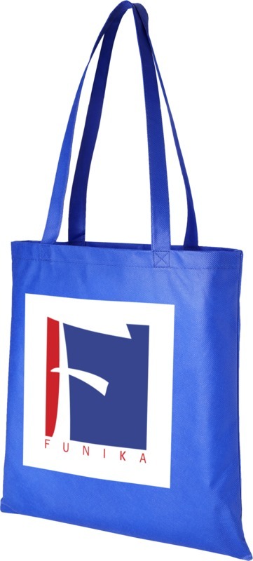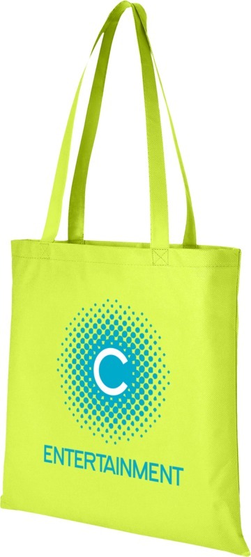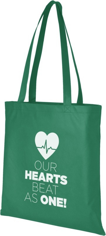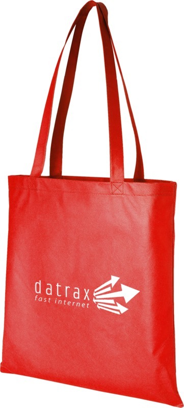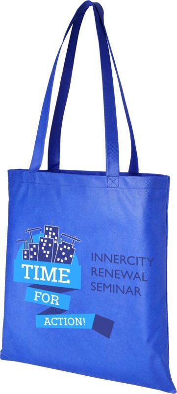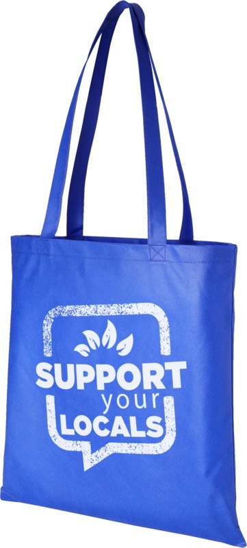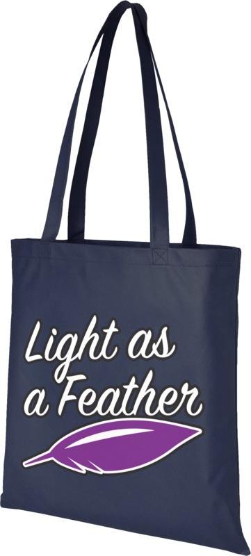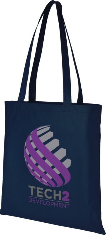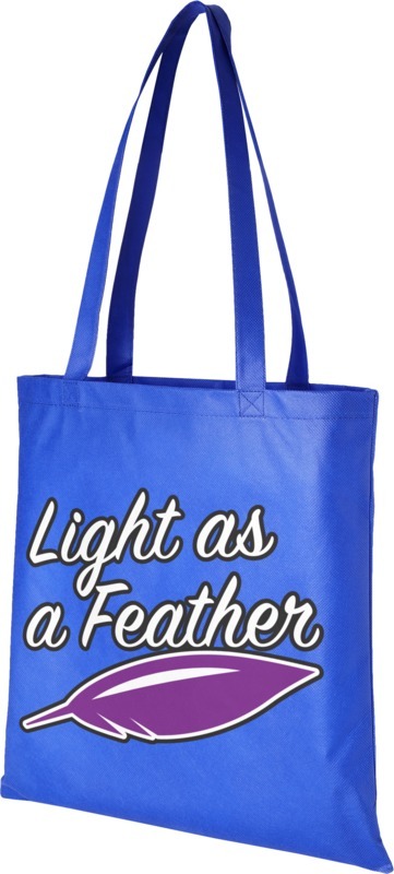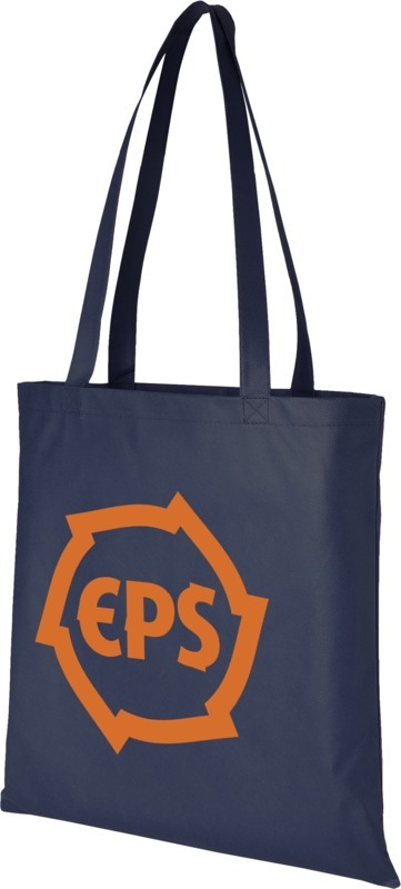 Нужна хорошая сумка для любой ярмарки или конференции? Большая нетканая сумка-тоут Zeus - отличный вариант. Тонкий дизайн делает ее элегантной моделью и подходит для переноски легких предметов, таких как блокнот и ручка. Длина ручек составляет 29 см, поэтому ее легко носить через плечо. Пластик PP non woven, 80 g/m2.