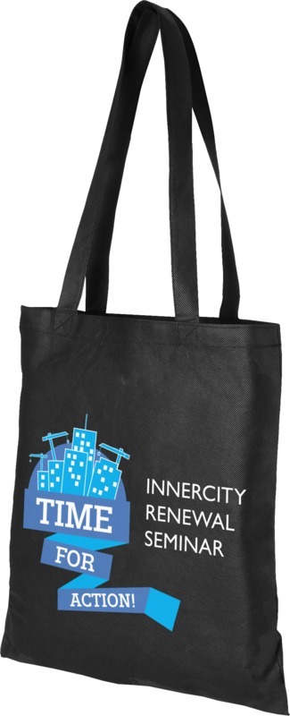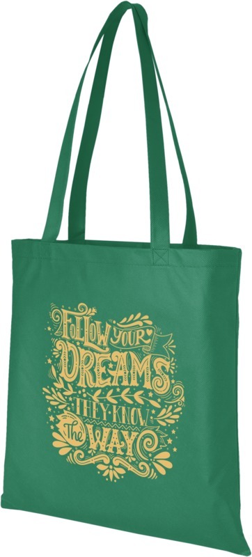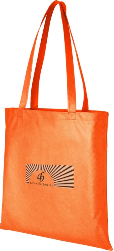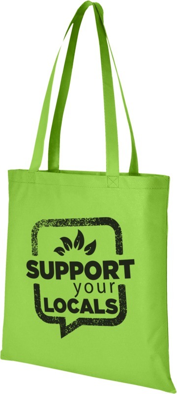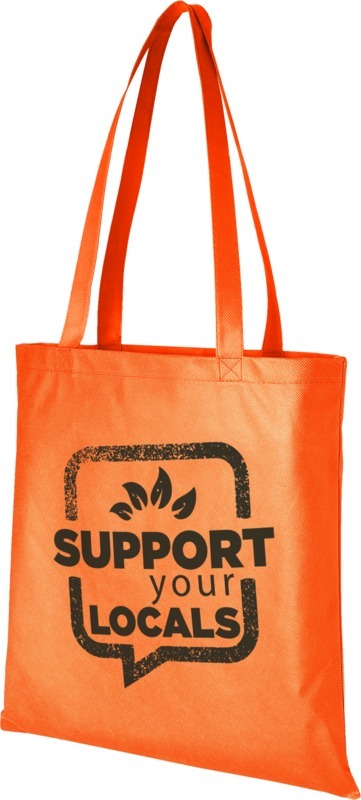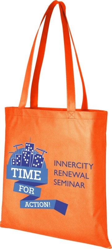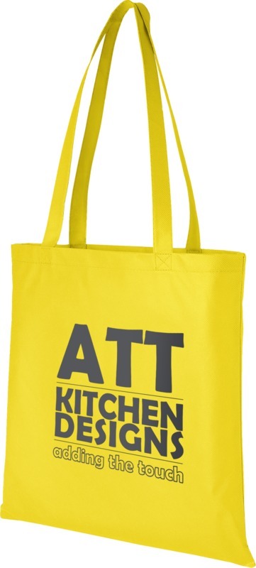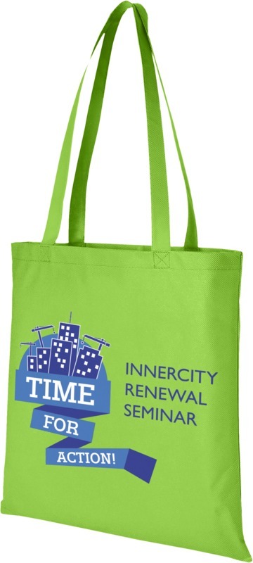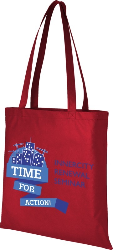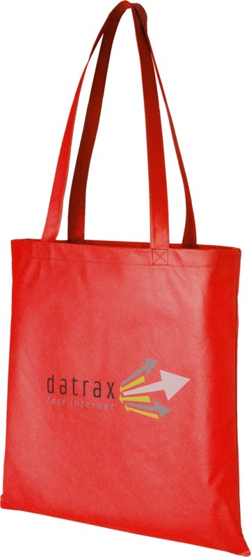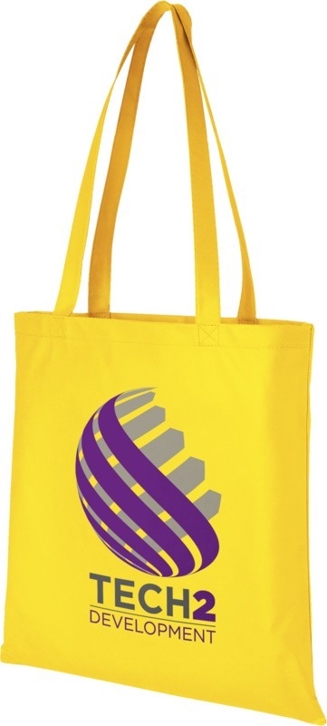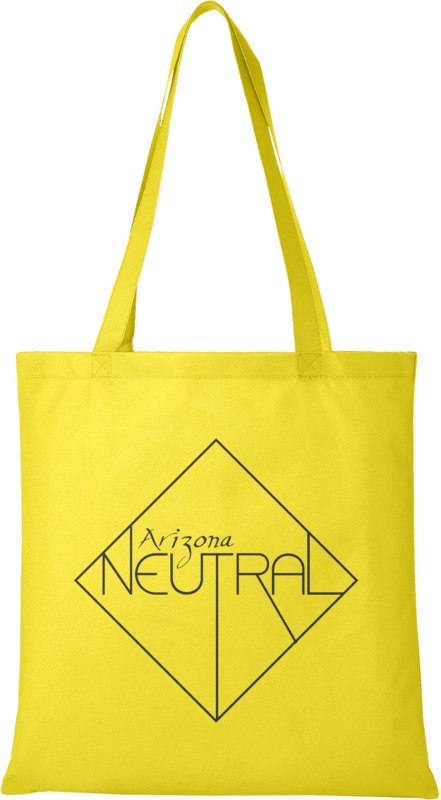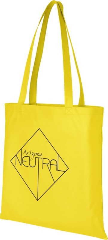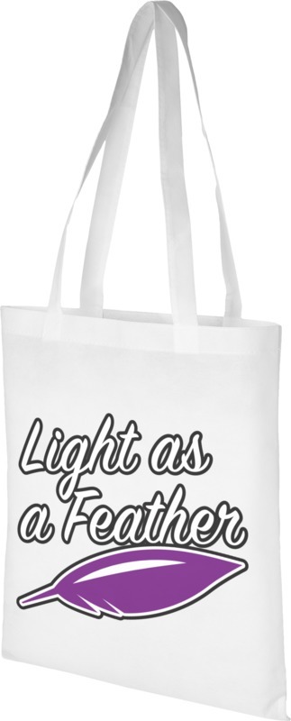 Нужна хорошая сумка для любой ярмарки или конференции? Большая нетканая сумка-тоут Zeus - отличный вариант. Тонкий дизайн делает ее элегантной моделью и подходит для переноски легких предметов, таких как блокнот и ручка. Длина ручек составляет 29 см, поэтому ее легко носить через плечо. Пластик PP non woven, 80 g/m2.