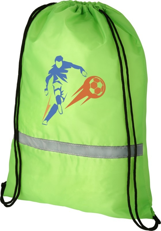 Сертифицированный по EN 13356 рюкзак со шнурком. Большое основное отделение с кулиской. Имеет отражающую полоску спереди и укрепленные углы. Прочность до 5 кг. 190TПолиэстер.