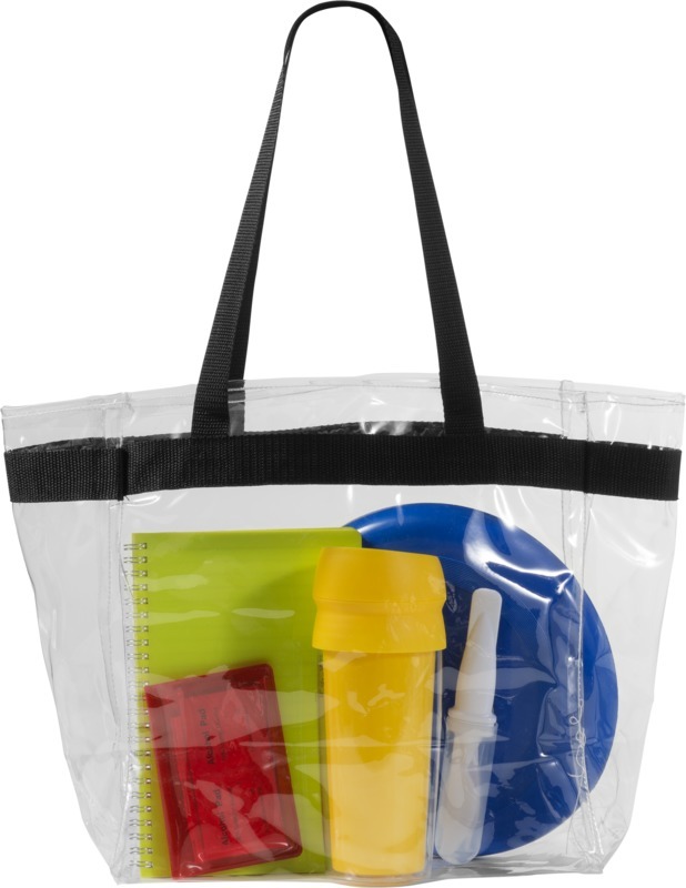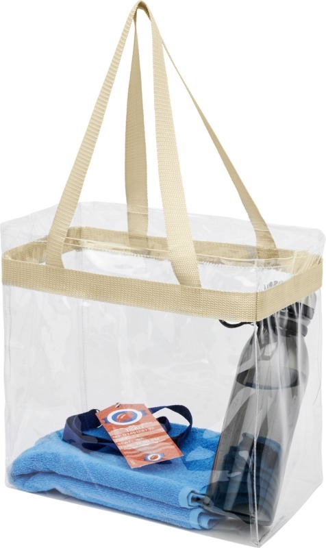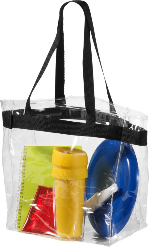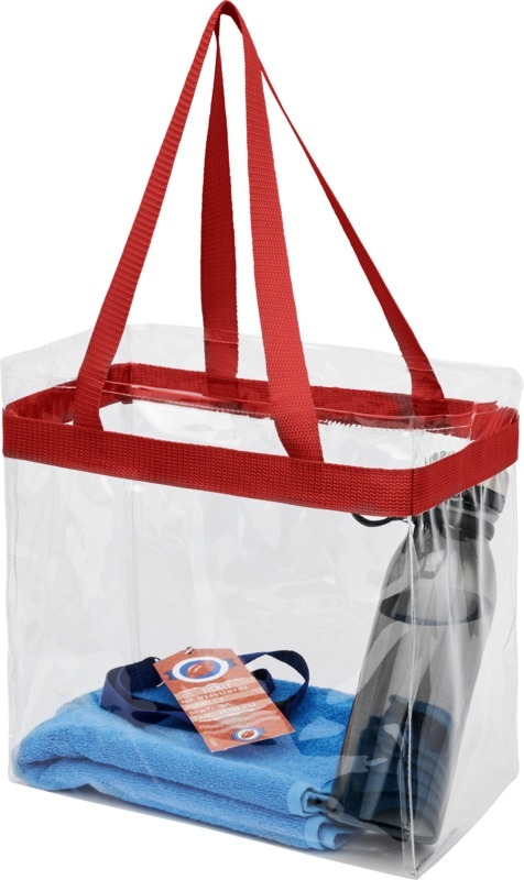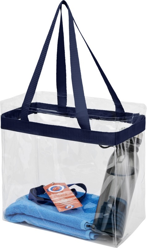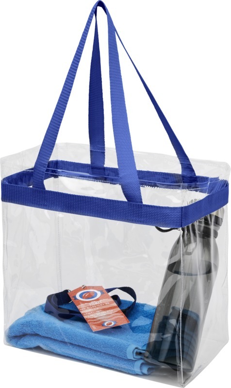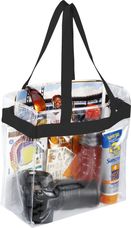 Эта прозрачная сумка отлично подходит для фанатов, которые предпочитают безопасно паковать свои принадлежности для стадиона и мероприятий. Она также подходит для работы и школы. Открытое основное отделение со спортивной сетчатой отделкой и двумя ручками. Высота ручек 27 см. Принадлежности не включены. ПВХ.