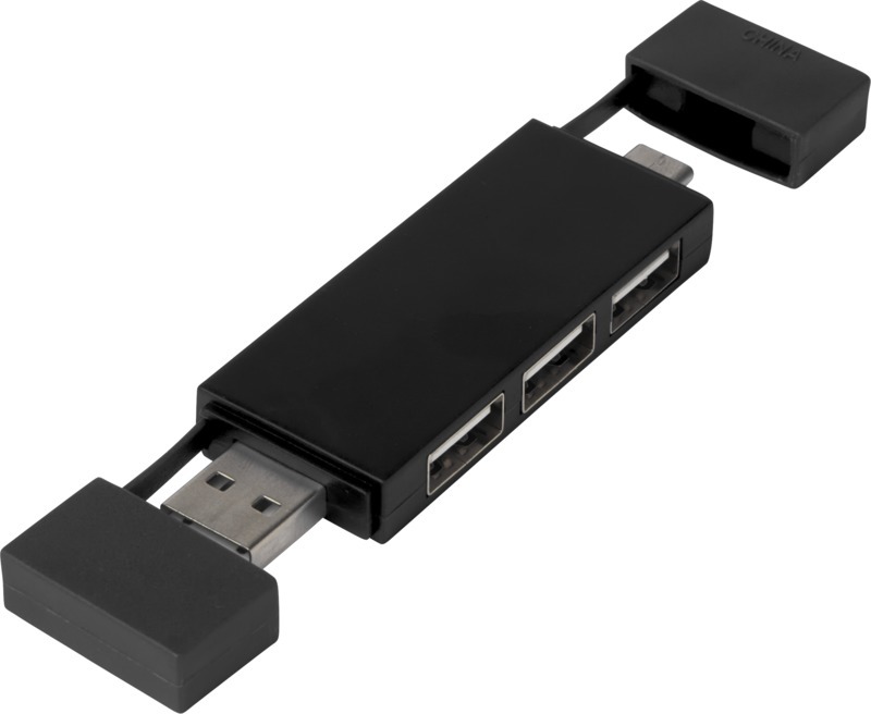 USB 2.0-хаб с 3 портами и встроенным кабелем с разъемами USB-A и Type-C. Пластик ABS.