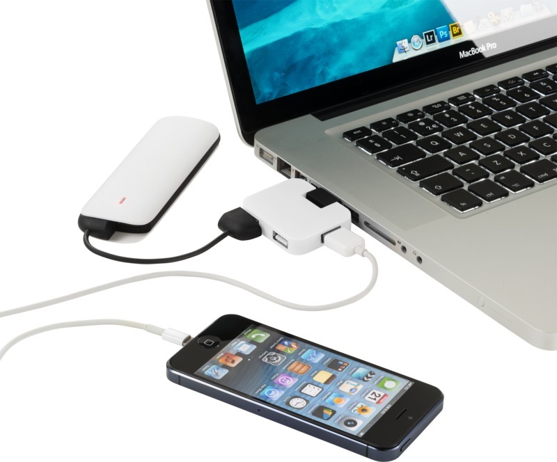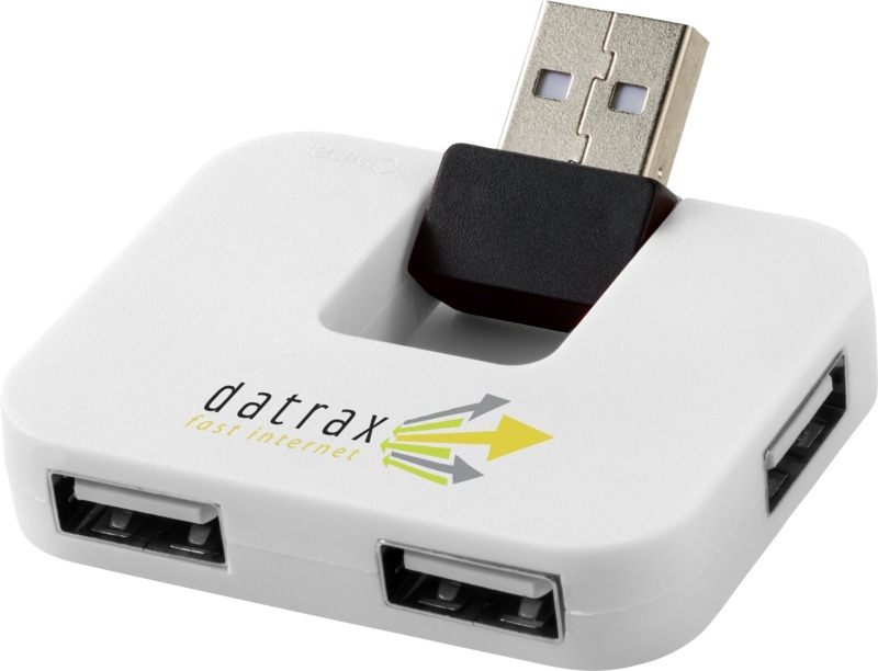 Прямоугольный USB хаб с 4 портами и складным входным портом. Пластик HIPS.