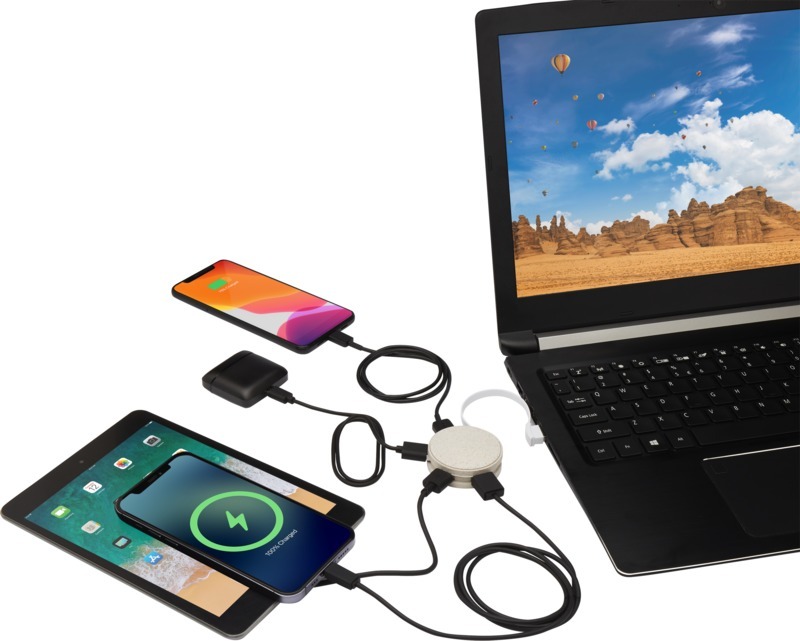 Круглый концентратор USB 2.0 из пшеничной соломы (40% пшеничной соломы, 60% пластика PP) с 4 портами USB-A для одновременного подключения нескольких устройств. Поставляется с фиксированным термополиэтиленовым USB-кабелем длиной 14,5 см, который можно удобно поместить внутрь концентратора. Скорость передачи 160 МБ/с. Возможна печать с обеих сторон. Поставляется в подарочной коробке и с инструкцией по эксплуатации (изготовленных из экологичных материалов). 60% Пластик ABS, 40% Wheat straw.
