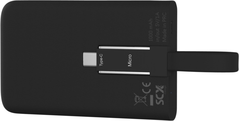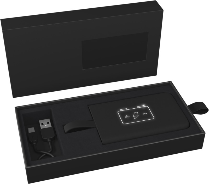 Миниатюрное портативное зарядное устройство с подсветкой логотипа и алюминиевым кабелем «3 в 1» (Type C, Android, iPhone). Устройство подсвечивается в течение 30 секунд, когда к нему прикасаются или когда оно заряжается. Емкость: 1000 мАч. Входная/выходная мощность DC: 5 В - 1 А. Вес нетто: 50 грамм Размер: 80 x 50 x 13 мм. Поставляется в подарочной коробке из бумаги вторичной переработки. Пластик ABS, Резина.