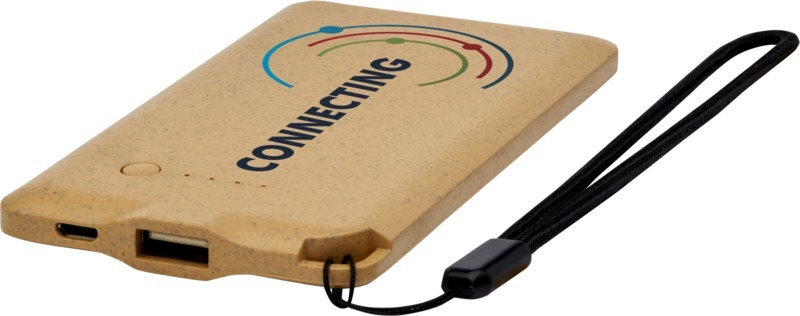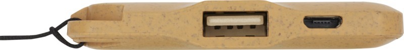 Компактное портативное зарядное устройство из биоразлагаемых материалов с удобной петлей для легкого крепления. Кабель для зарядки в комплекте. Входная мощность: 5 В/800 мA пост. тока. Выходная мощность: 5 В/1000 мA пост. тока. Батарея: литий-ионный полимер. Биоразлагаемый пластик, Биоразлагаемый пластик.