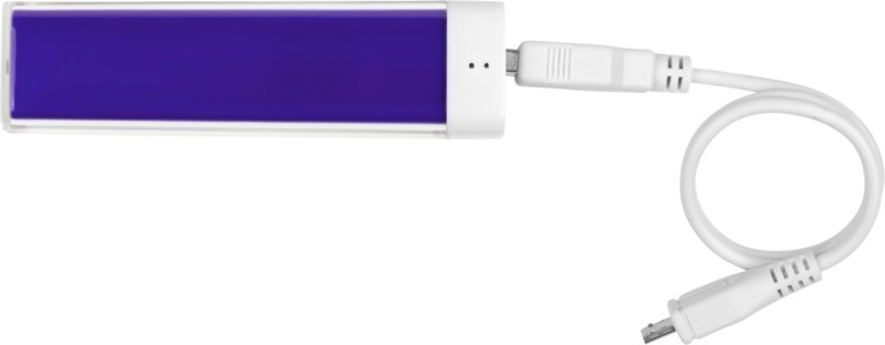 Повербанк с аккумулятором емкостью 2200 мА/ч для эффективной зарядки мобильного устройства. Зарядное устройство заряжается в течение 2 часов, включает кабель USB и индикатор. Красный свет обозначает процесс зарядки, синий свет – полную разрядку, а когда устройство заряжено, индикатор гаснет. Предлагается в белой картонной коробке. Пластик ABS, Пластик PC.
