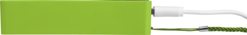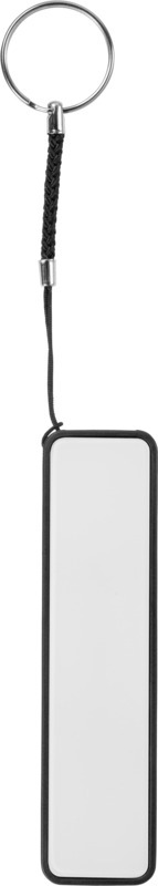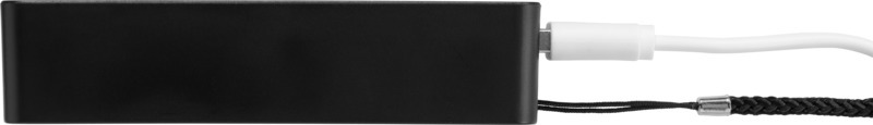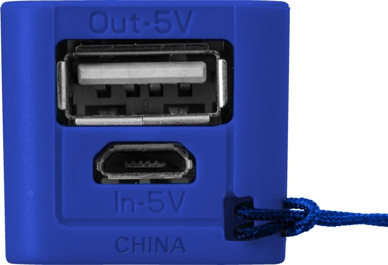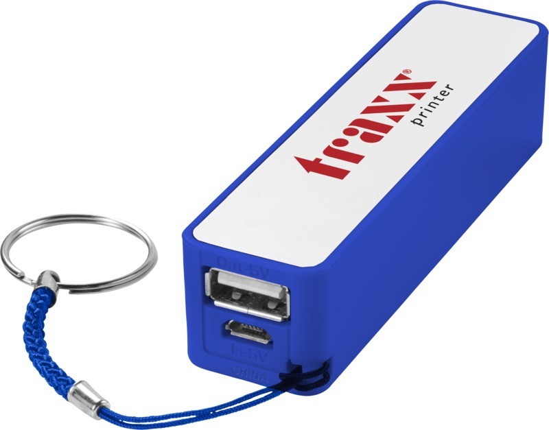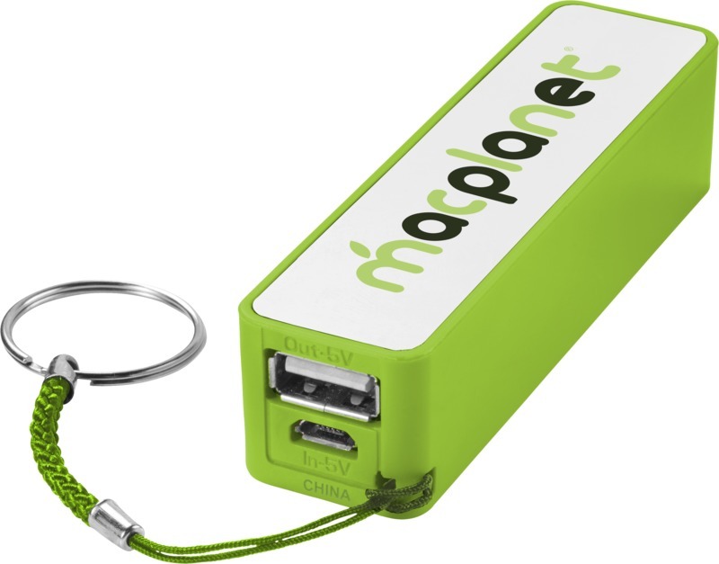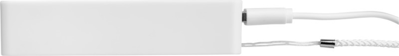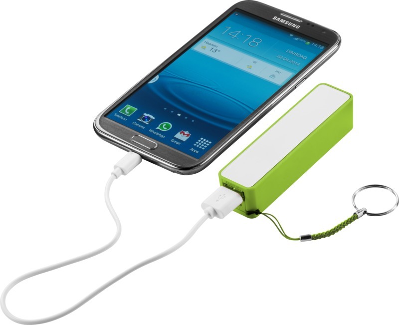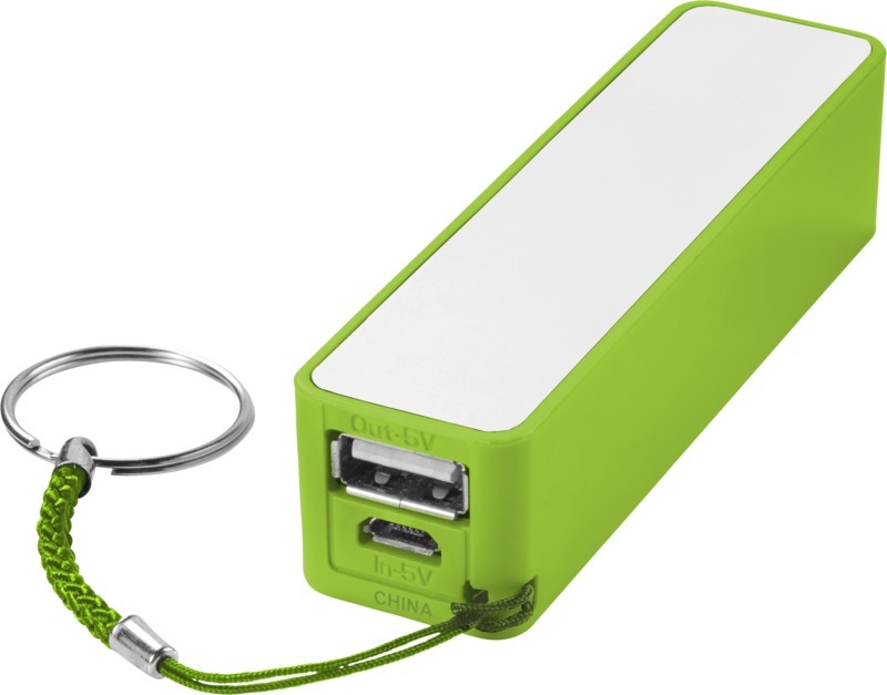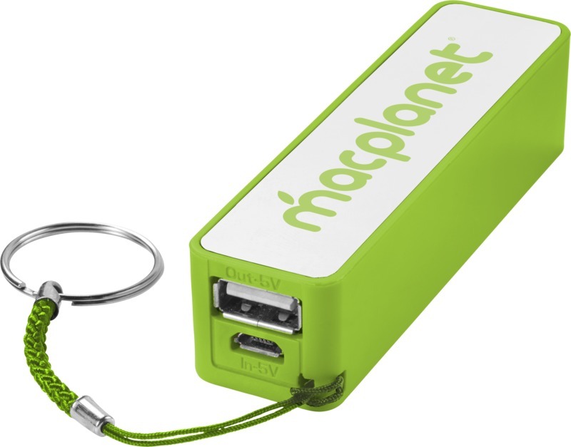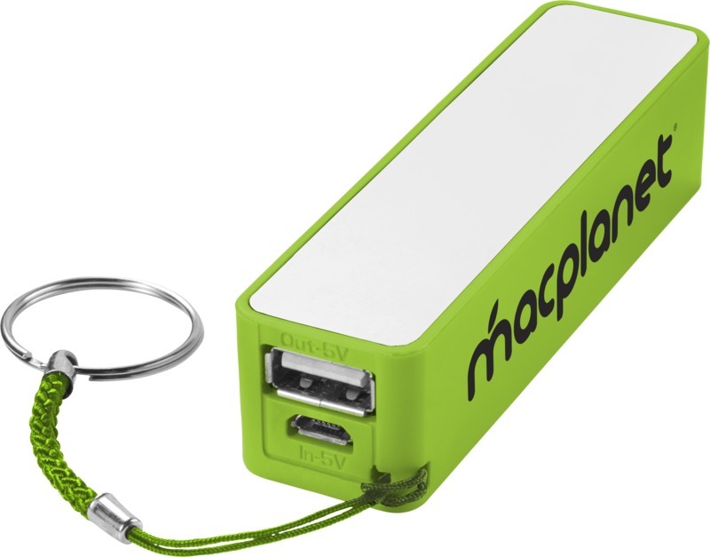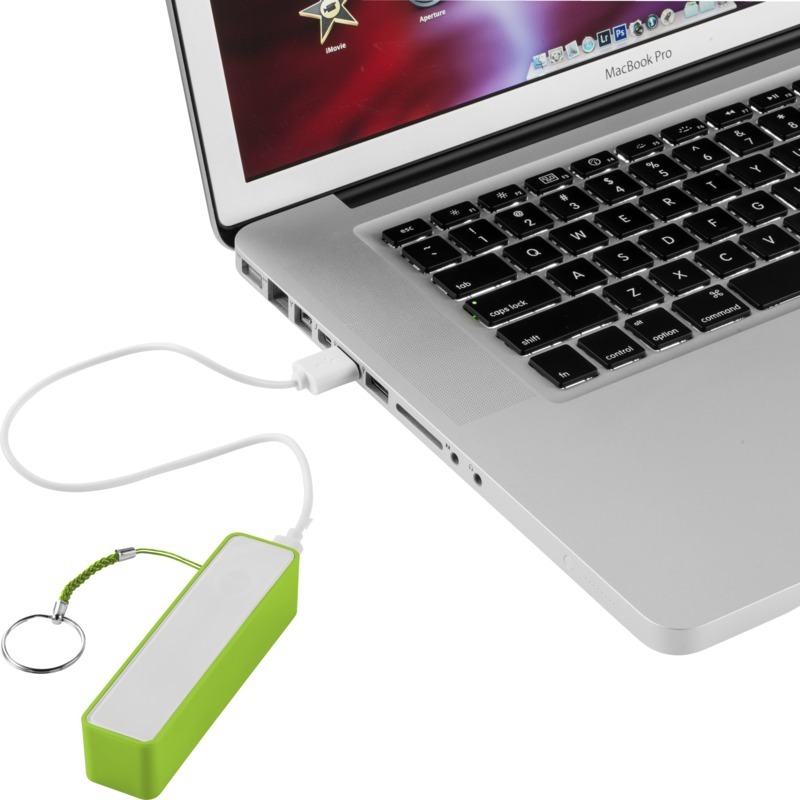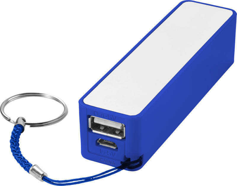Зарядное устройство с аккумулятором емкостью 2000 мА/ч и светодиодным индикатором для обозначения зарядки. Зарядное устройство заряжается через кабель USB в течение около 2 часов. Включает металлическое кольцо для ключей и белую картонную коробку. Пластик ABS.
