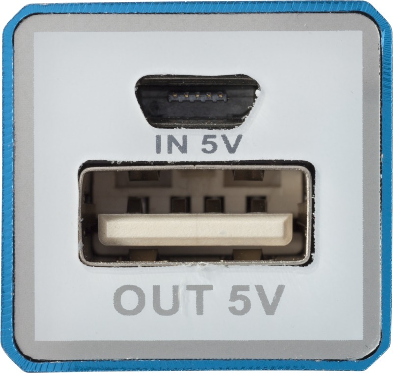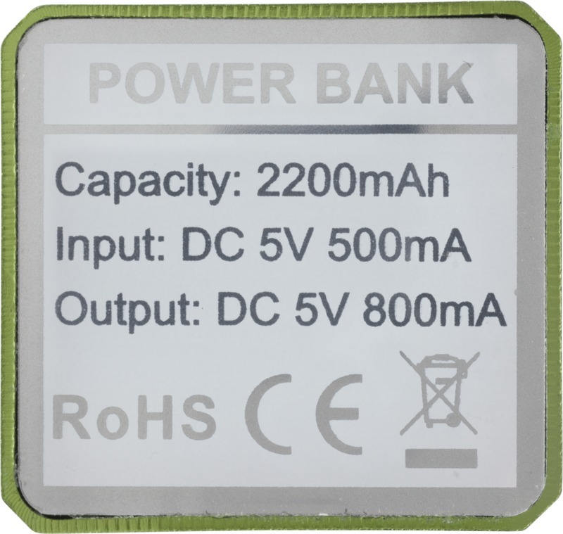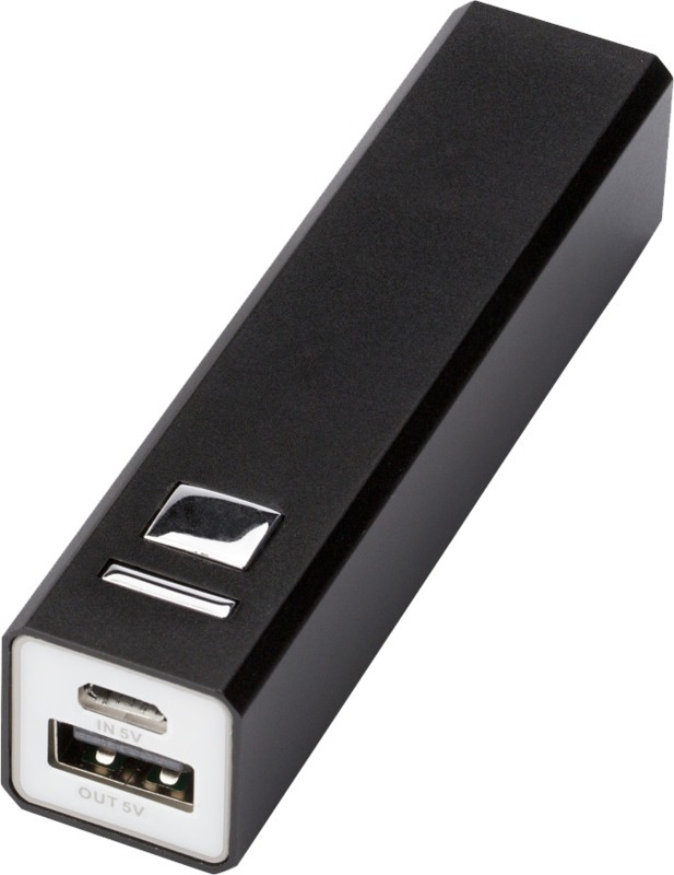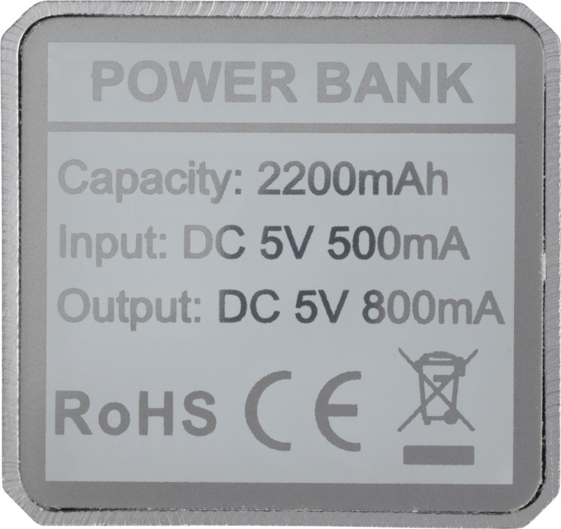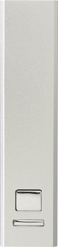 Powerbank WS101. Compact, rectangular shaped powerbank. By pressing the main button, an LED indicator will tell you the residual battery charge. Micro USB charging cable included. The lithium-ion battery can be recharged in 2 hours. Aluminium. Алюминий.