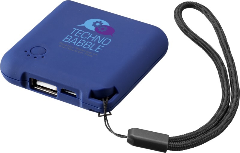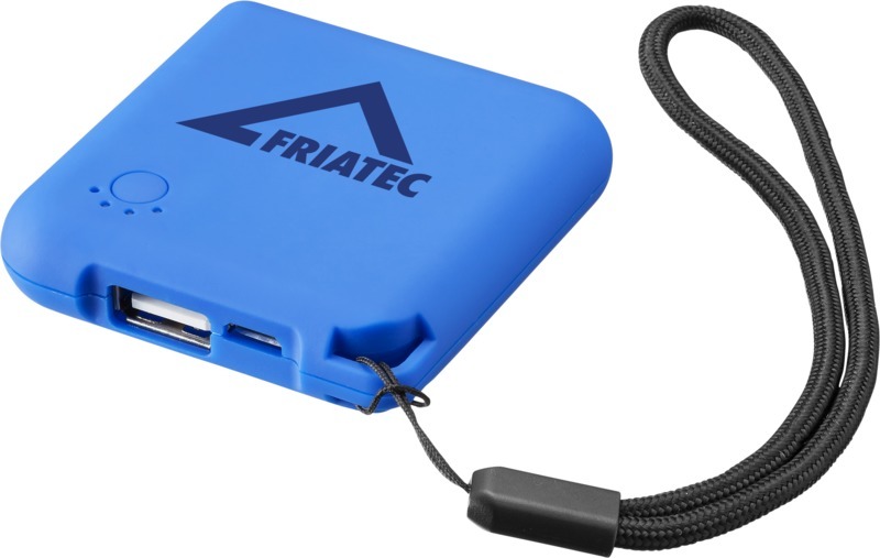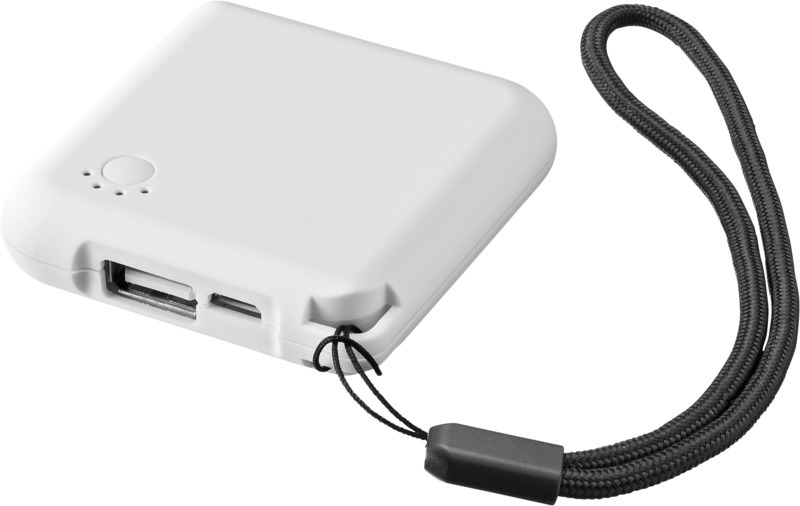 A very compact and portable powerbank. Its square and flat shape allows you to carry it anywhere. ABS matt finish body, for a smooth hand feel. Handle loop for easy carrying. Micro USB charging cable included. The lithium-polymer battery can be recharged in just 3 hours. Пластик ABS, Резина.