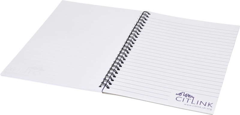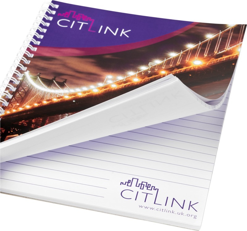 Блокнот Desk-Mate® формата A4 на спирали. Этот блокнот скреплен белой или черной спиралью. Доступен в различных размерах. Имеет глянцевую картонную обложку (250 г/м²) и состоит из чистых листов бумаги (80 г/м²). Стандартный вариант состоит из 50 листов, а также доступно по 80 листов. На обложку и каждый лист можно нанести рисунок. Бумага, 80 g/m2, Картон, 280 g/m2. FSC Mix Credit P7.1 CU-COC-877277.