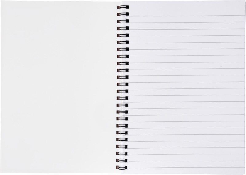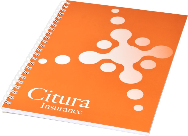 Блокнот Desk-Mate® формата A4 на спирали. Состоит из 50 чистых листов (80 г/м²) и обложки (450 г/м²). Обложка — нервущаяся и водонепроницаемая. Спираль белого цвета. На обложку и каждый лист можно нанести рисунок. Бумага, 80 g/m2, SYNAPS paper. FSC Mix Credit P7.1 CU-COC-877277.