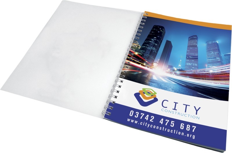 Блокнот Desk-Mate® формата A5 на спирали. Состоит из чистых листов 80 г/м². Стандартный вариант состоит из 50 листов, а также доступно по 100 листов. Блокнот имеет прозрачную полипропиленовую обложку (250 г/м²) толщиной 0,5 мм. Бумага, 80 g/m2, Пластик PP, Картон, 280 g/m2. FSC Mix Credit P7.1 CU-COC-877277.