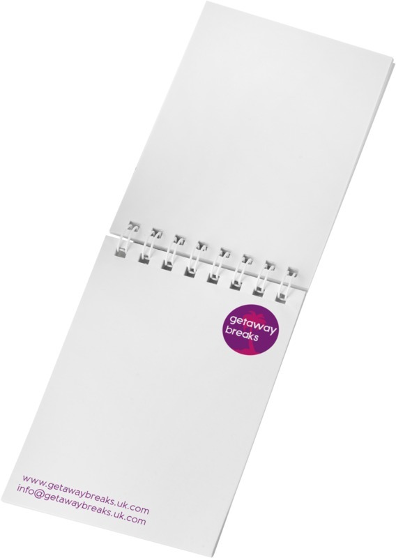 Блокнот Desk-Mate® формата A7 на спирали. Этот блокнот скреплен белой или черной спиралью, имеет глянцевую картонную обложку (250 г/м²) и состоит из 50 чистых листов бумаги (80 г/м²). На обложку и каждый лист можно нанести рисунок. Бумага, 80 g/m2, Картон, 280 g/m2. FSC Mix Credit P7.1 CU-COC-877277.