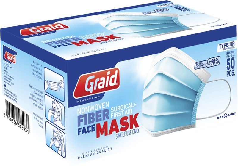 Трехслойная маска для лица типа IIR. Стирать при температуре 60 градусов. Маска для лица с мягкой и прочной резинкой и зажимом для носа, обеспечивающим хорошую посадку. Маска обладает высокой бактериальной фильтрацией. Одноразовая маска рекомендуется для использования населением в целом и медицинскими работниками, чтобы уменьшить перекрестное заражение и свести к минимуму риск заражения в целом. Обеспечивает комфорт благодаря дышащему материалу, который не раздражает кожу. Маркировка СЕ в соответствии с Директивой ЕС по медицинским изделиям 93/42 / EEC, приложение V. 3 и Vii, класс 1 Правило 1. Тип IIR одобрен в соответствии с EN 14683: 2019. Брызгоустойчивый и гарантирует эффект бактериального фильтра (BFE) ≥ 98%. Протестирован на биосовместимость. Non-woven polypropylene.