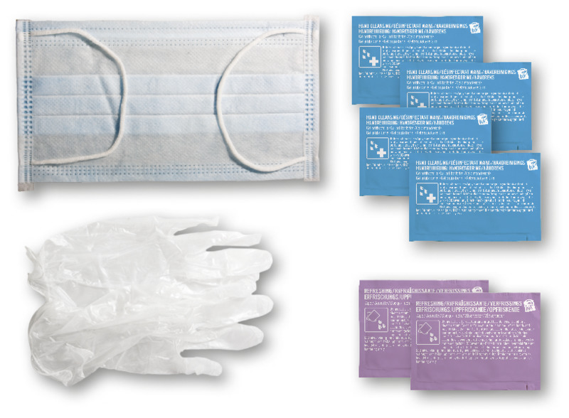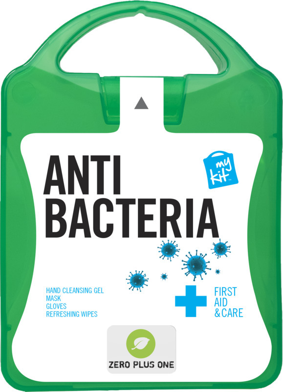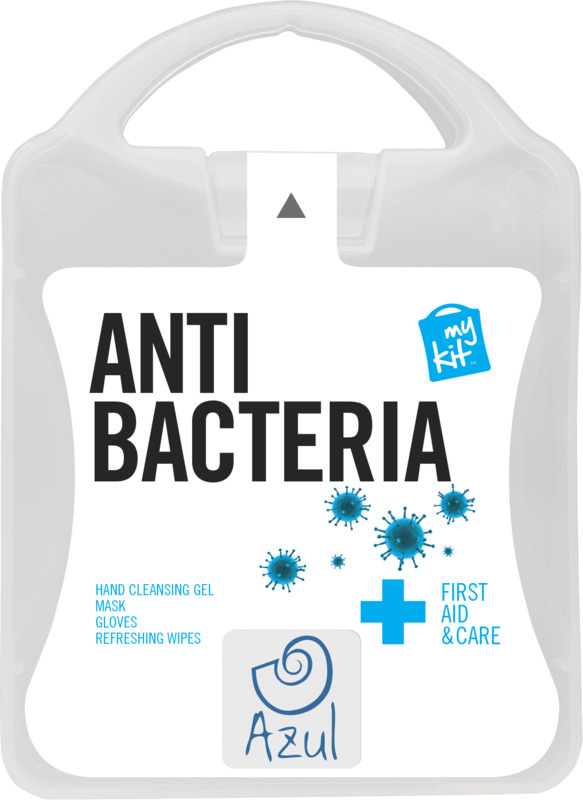 Идеальный набор, обеспечивающий все необходимое для защиты от воздействия бактерий. Содержимое: 1 Маска, 1 пара одноразовых перчаток, 2 освежающие салфетки, 4 дезинфицирующих геля. Все средства первой помощи и ухода в комплекте соответствуют нормам ЕС. В стоимость входит полноцветная печать. Пластик.