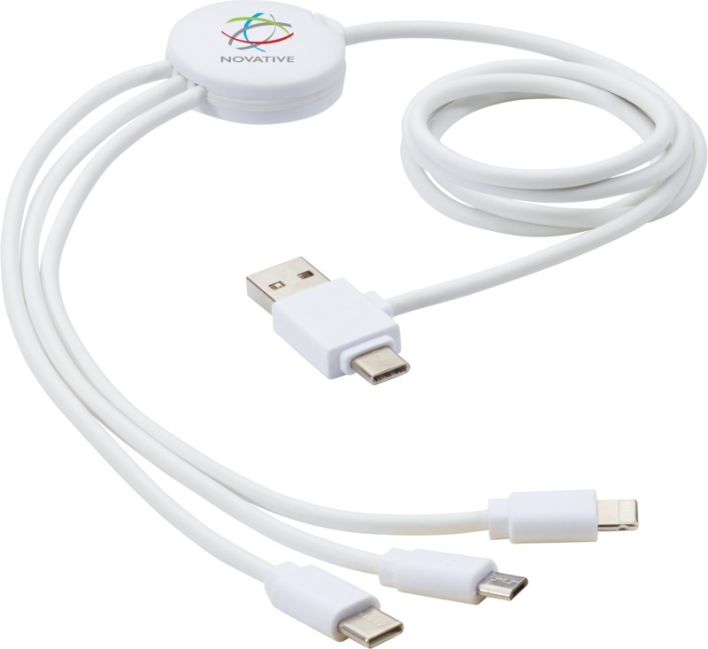 Зарядный кабель с противобактериальной присадкой и 5 разными разъемами: Вход Тип-C, вход USB-A, выход Тип-C, выход iOS и выход micro USB. С возможностью использования кабеля с устройствами с выводом Тип-C, которым оснащены телефоны и компьютеры MacBook нового поколения. Длина кабеля составляет 100 см. Противобактериальная присадка способна эффективно снижать уровень бактерий, присутствующих на поверхности материала, с высокой эффективностью подавляя рост бактерий и грибков, создающих неприятные запахи, приводящих к окрашиванию и деградации текстильных и пластиковых изделий. Протестировано в соответствии с ISO 20743:2013. ПВХ, Пластик ABS.