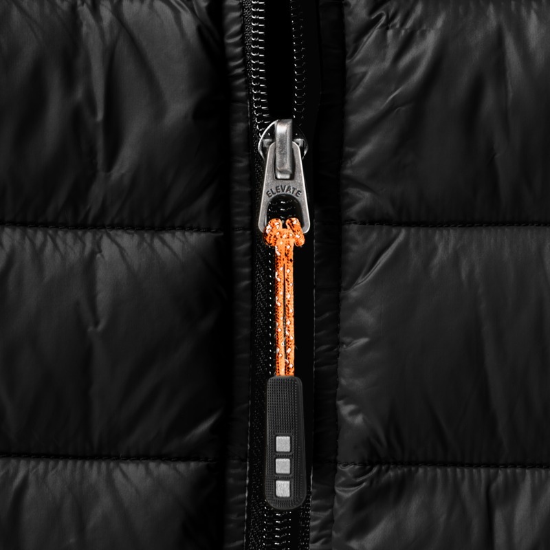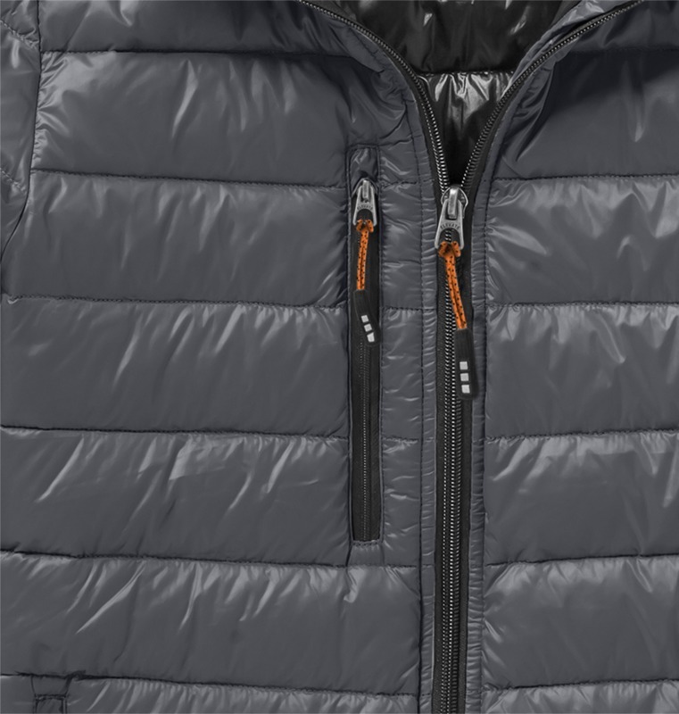 Dull cire 20D woven with water repellent finish of 100% Nylon, 37 g/m2, Padding/filling, Down insulation: Responsible Down Standard (RDS) of 90% Down and 10% Feathers
